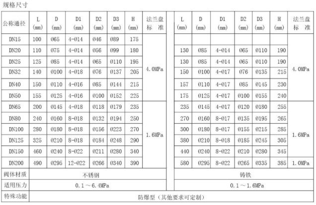 產(chǎn)品規(guī)格:DN15~DN1000 閥體材質(zhì):鑄鐵、不銹鋼 (鑄鐵不能用在腐蝕流體上) 適用介質(zhì):水、氣、油、蒸汽、燃?xì)、腐蝕流體等 溫度范圍:-200~450℃ 介質(zhì)粘度:小于50 C St (大于時需定制) 防護(hù)性能:防水、防爆 (Exd II CT5)、防腐 閥芯材質(zhì):不銹鋼 接線方式:接線座式、引線式、插頭式 控制方式:常開、常閉 電源電壓:DC12~127V; AC36~380V 連接方式:內(nèi)螺紋、(外螺紋和特殊接口可定做或加轉(zhuǎn)接頭) 工作原理: A:當(dāng)電磁閥2號線圈瞬間通電后斷電,電磁閥打開。 B:當(dāng)電磁閥1號線圈瞬間通電后斷電,電磁閥關(guān)閉。 信號反饋: (加此功能電磁閥接觸的溫度不超過100℃) 當(dāng)電磁閥打開時,信號公共線和開信號線接通; 當(dāng)電磁閥關(guān)閉時,信號公共線和關(guān)信號線接通。