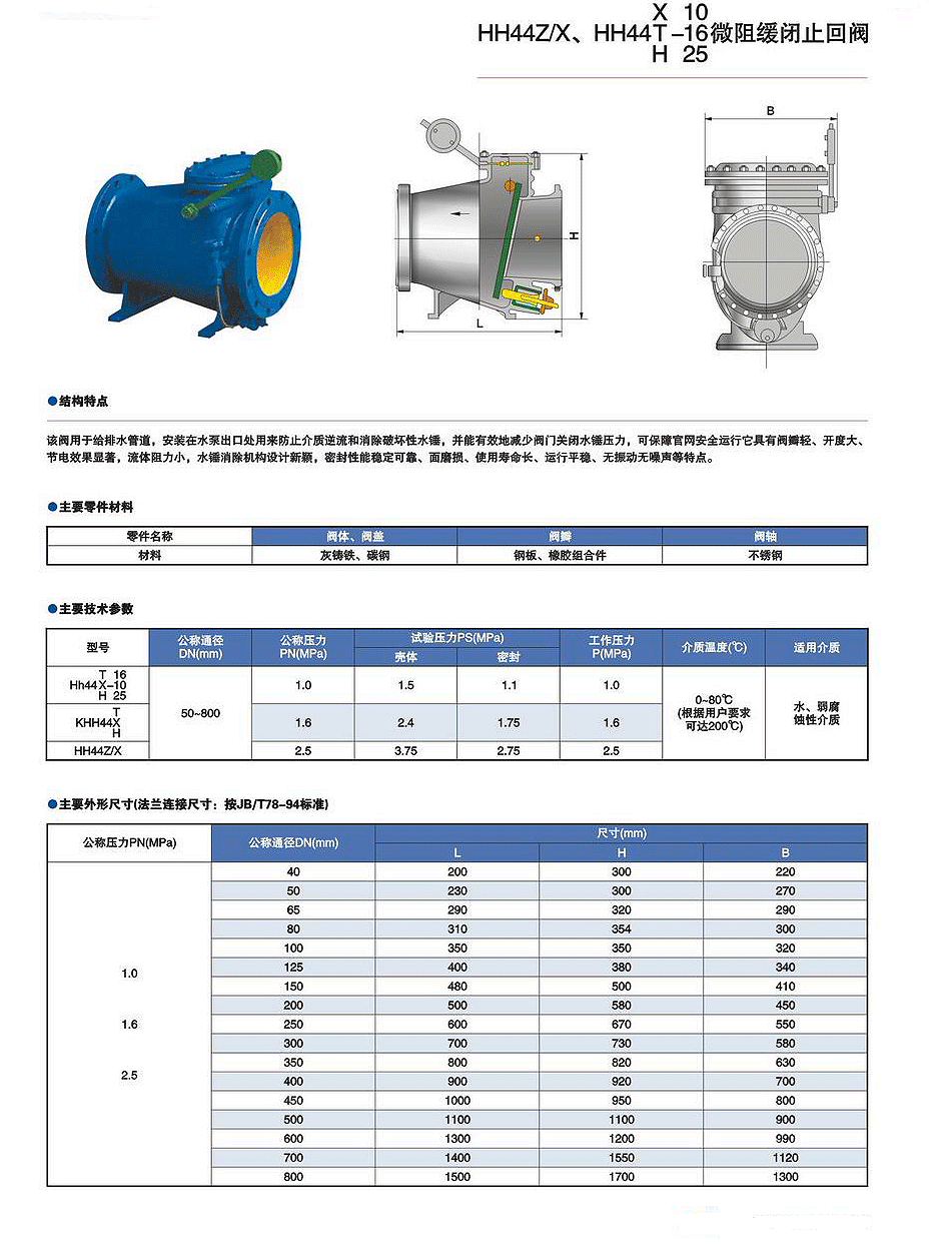 | 產(chǎn)品名稱:HH44Z/X HH44X/T/H- 10 16 25微阻緩閉止回閥 |