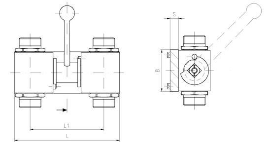 帶連動(dòng)手柄BKH直通高壓球閥,訂貨時(shí)型號(hào)前加"2×",如2×BKH G3/8 08 1125。