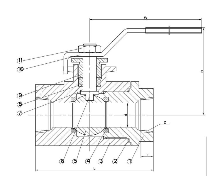 三、Q11F二片式內(nèi)螺紋球閥主要尺寸: