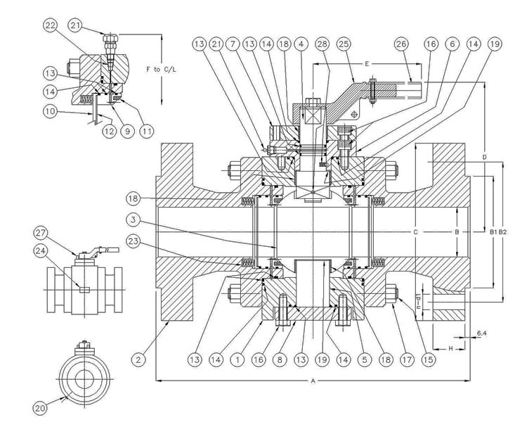 注:其中三段式硬密封法蘭球閥結(jié)構(gòu)尺寸與軟密封三片式球閥相同。