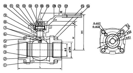 二片式高平臺球閥產品介紹 二片式高平臺球閥用于截斷或接通管路中的介質,適用于PN1.0~6.4MPa,工作溫度-29~180℃(密封圈為增強聚四氟乙烯)或-29~300℃(密封圈為對位聚苯)的各種管路上,選用不同的材質,可分別適用于水、蒸汽、油品、硝酸、醋酸等多種介質 高平臺球閥產品標準 平臺標準:ISO-5211 啟閉力N:DN50:500-600 可選配裝置: 電動執(zhí)行器, 氣動執(zhí)行器, 手柄 產品設計標準: GB/T12237, ASME16.34, API608 管螺紋標準: GB/T7306, GB/T7307, ISO7-1, ISO288-1, ASMEB1.20.1, BS21, DIN2999/599, BSP 檢驗標準: JB/T9092,API598, EN12266 工作壓力: 1000WOG/PSI 溫度范圍: -46°C ~ 200°C (-50°F~350°F) Q11F二片式高平臺球閥結構圖